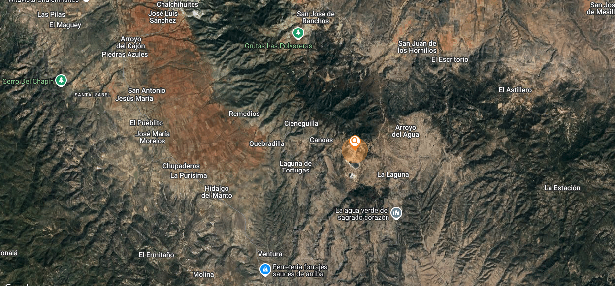 La Colorada, Chalchihuites, Zacatecas. El proyecto se encuentra dentro de los límites del municipio de Chalchihuites, en el extremo Este del Estado de Zacatecas, aproximadamente a 140 km al sureste de Durango y 160 km al Este-noreste de la ciudad de Zacatecas. El conflicto entre la comunidad, representada por la Asamblea General de la Colorada, y la compañía minera, se recrudeció a finales del 2013, cuando la minera obtuvo el permiso para expandir sus actividades con una inversión de 80 millones de dólares a recuperar en dos años y medio, estimando operar del 2014 al 2023, para dichos fines era necesario eliminar a la comunidad que vivía en la zona y obligaron a las y los pequeños productores y a sus familias a aceptar sus condiciones, comenzando así, el proceso de reconfiguración territorial a partir del despojo.