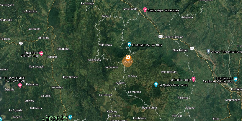 El suroeste antioqueño está conformado por 23 municipios, en este caso se tienen como referencia los municipios de Caramanta, Valparaíso, Támesis, Jardín, Andes, Jericó, Pueblorrico, Tarso, Hispania, que se encuentran entre los ríos Cauca y San Juan.
